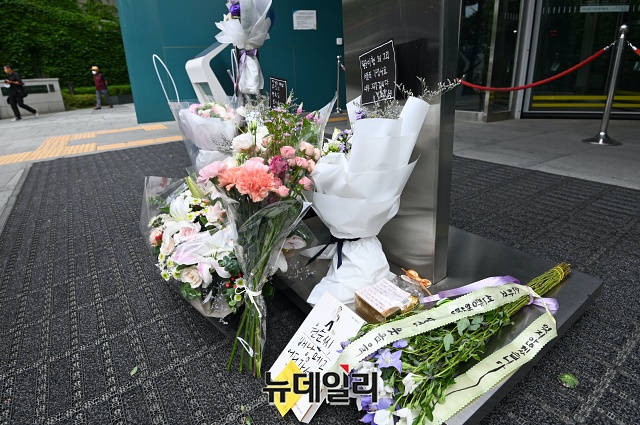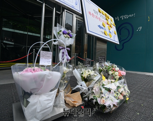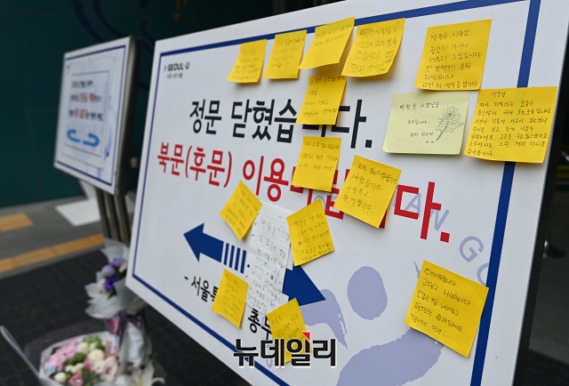 메모에는 "박원순 시장님 황망히 가시니 그립습니다" "사랑하고 존경합니다" 등 추모 메모와 꽃다발이 놓여졌다.