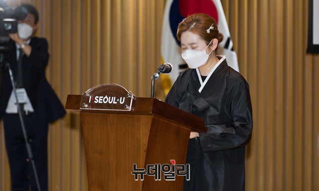 박원순 서울특별시장 영결식이 13일 오전 서울 중구 서울시청에서 열린 가운데 박 시장의 딸인 박다인 씨가 유족인사를 하고 있다. (사진=공동취재단)
