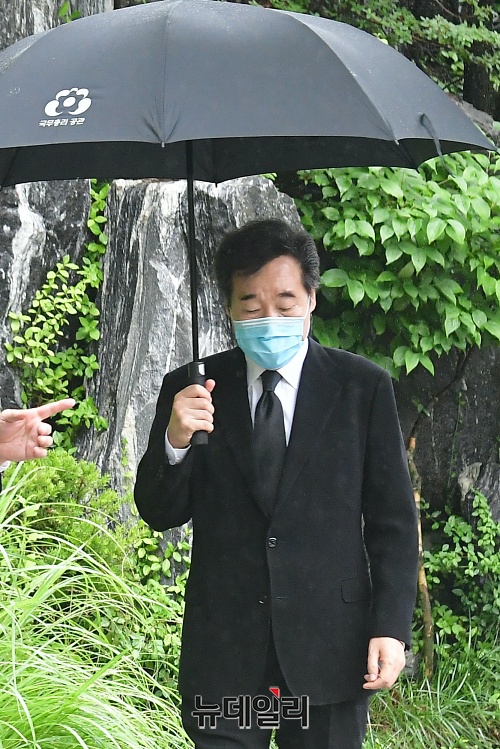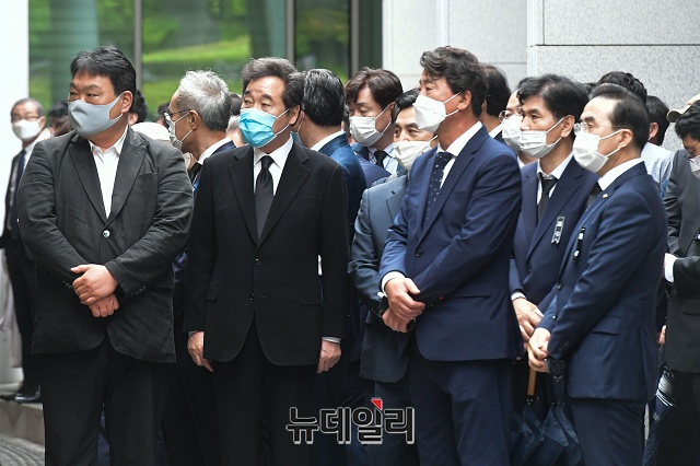 이낙연 더불어민주당 의원을 비롯한 의원들이 13일 오전 故 박원순 서울시장을 추모하기 위해 서울 서초구 서울추모공원에 도착해 이동하고 있다.