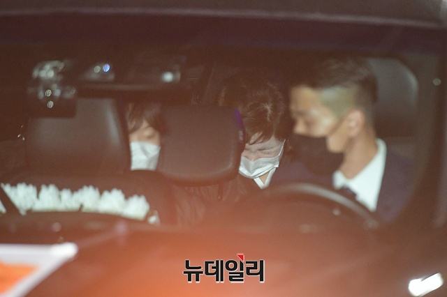박원순 서울시장의 부인 강난희 여사가 13일 오후 서울 서초구 서울추모공원에서 슬픔에 잠긴채 차량에 탑승해있다.