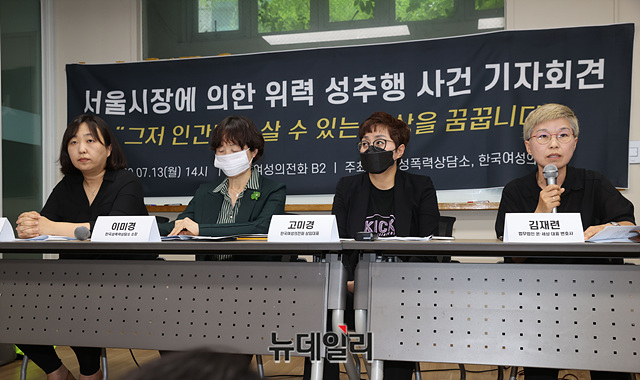 이날 송란희 한국여성의전화 사무처장, 이미경 한국성폭력상담소 소장, 고미경 한국여성의전화 상임대표 등이 참석했다.