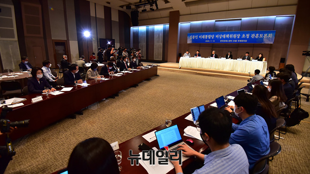 김종인 미래통합당 비상대책위원장이 14일 오전 서울 중구 한국프레스센터에서 관훈클럽 초청으로 열린 관훈토론회에서 모두 발언을 하고 있다.