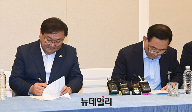 [포토] 7월 국회 일정 합의하는 '주호영-김태년'