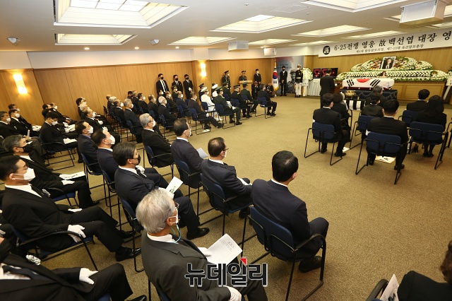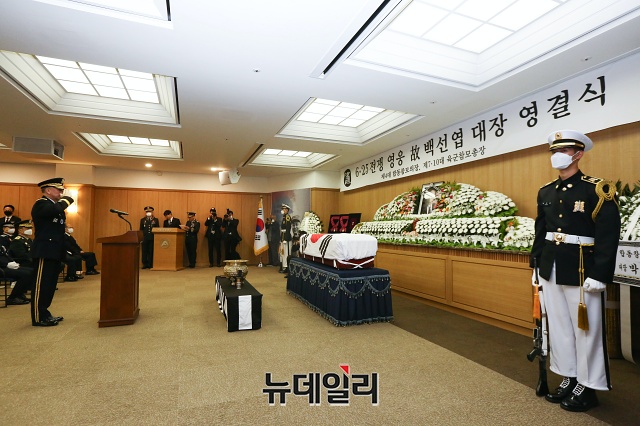 백 장군의 영결식은 서욱 육군참모총장 주관으로 15일 오전 7시 30분 서울아산병원에서 육군장으로 진행됐다. 장지는 국립대전현충원 제2장군묘역에 안장될 예정이다. (사진=공동취재단)