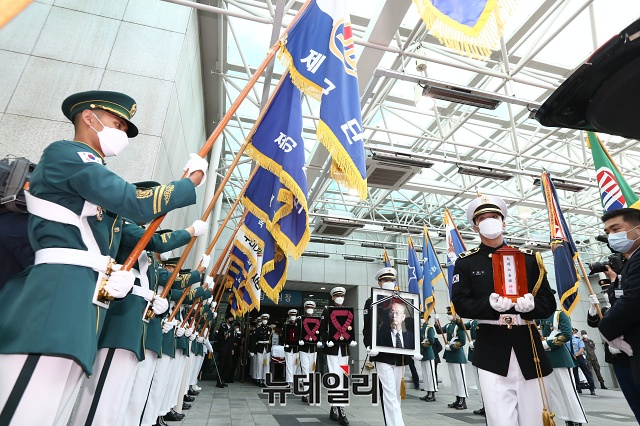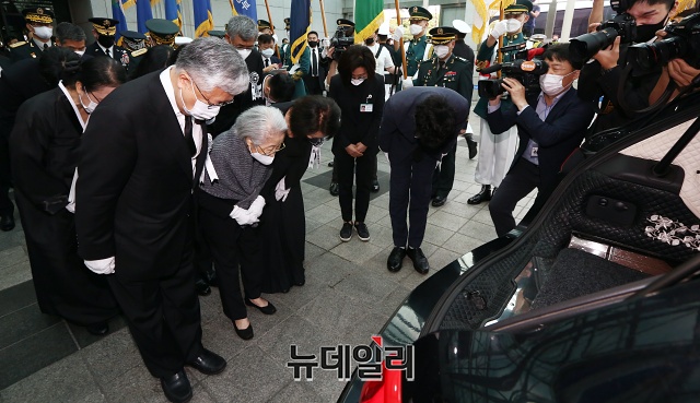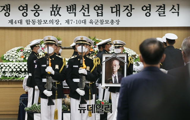 백 장군의 영결식은 서욱 육군참모총장 주관으로 15일 오전 7시 30분 서울아산병원에서 육군장으로 진행됐다. 장지는 국립대전현충원 제2장군묘역에 안장될 예정이다. (사진=공동취재단)