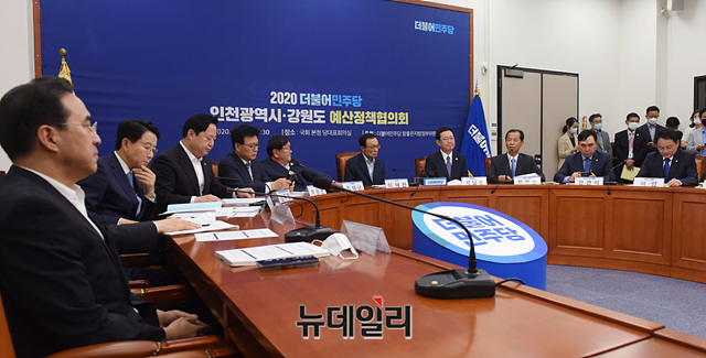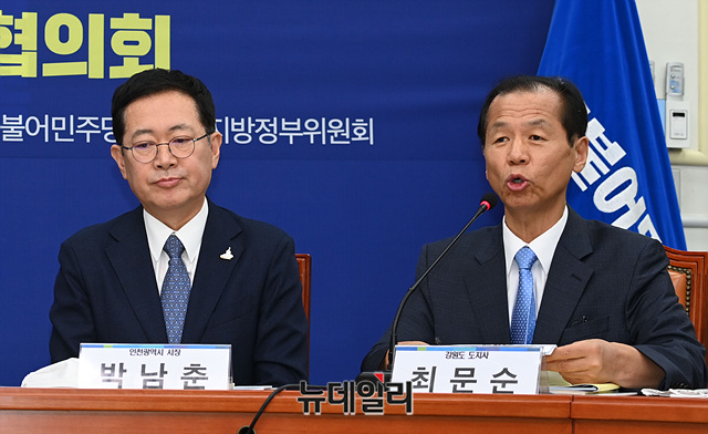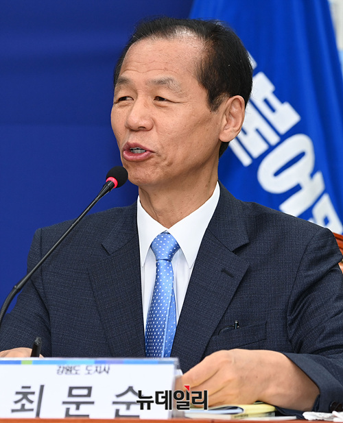 최문순 강원도지사가 15일 오전 국회에서 열린 '더불어민주당-인천·강원 예산정책협의회'에서 발언을 하고 있다.