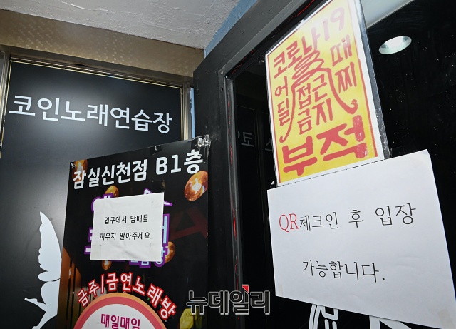 서울시내 한 코인노래방에 15일 오후 QR코드 체크인 후 입장 가능하다는 안내문이 붙어있다.서울시는 10일 '10대 방역수칙'을 내걸고, 방역수칙 여건이 마련된 코인노래방을 대상으로 집합제한명령으로 완화하겠다고 밝혔다. 5월 22일 집합금지명령을 내린 이후 50일 만이다.서울시가 밝힌 10대 방역수칙은 △전자출입명부에 의한 고객명부 작성·출입구 유증상자 확인 △사업주‧종사자 마스크 착용 △종사자 1일 1회 점검, 유증상시 퇴근 △방역관리 책임자 지정 △영업 전‧후 실내소독 △이용룸에 대한 소독 △1인 이상의 방역 관리자가 상주 및 방역 관리 △부스 당 이용 인원 최대 2명으로 제한 △정기적 환기 등 이다.노래방 관계자는 "'코로나19(중국 우한 폐렴)'로 한 동안 영업을 못하다가 10일부터 다시 영업을 재개했다"며 "10대 방역수칙을 잘 지키고 있음에도 불구하고 손님들이 많이 안 와서 걱정이다"고 말했다.