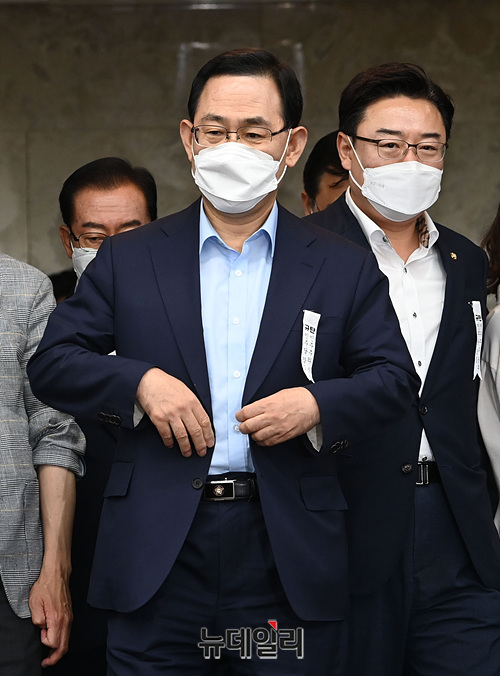 [포토] 통합당 의총 참석하는 주호영