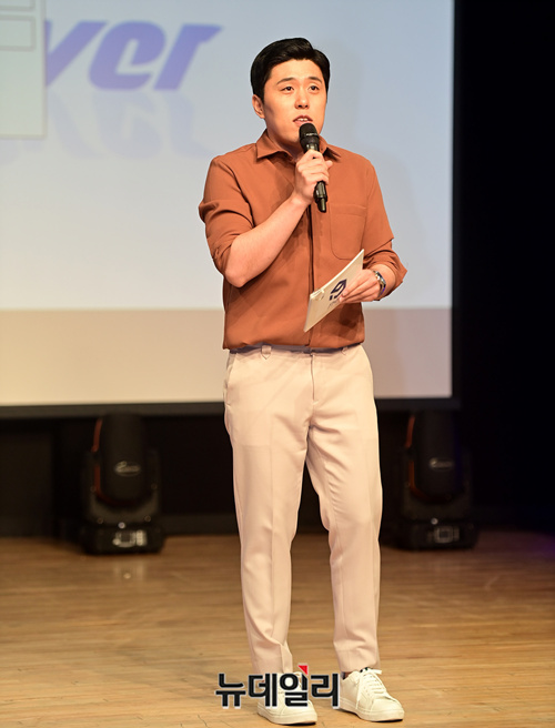 MC 하루가 16일 오후 서울 강남구 일지아트홀에서 열린 원더나인 3번째 미니앨범 'Turn Over(턴 오버)' 쇼케이스에서 멤버를 소개하고 있다.