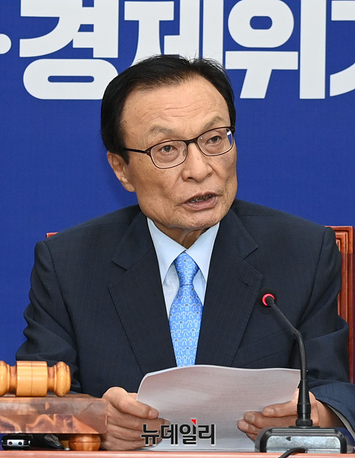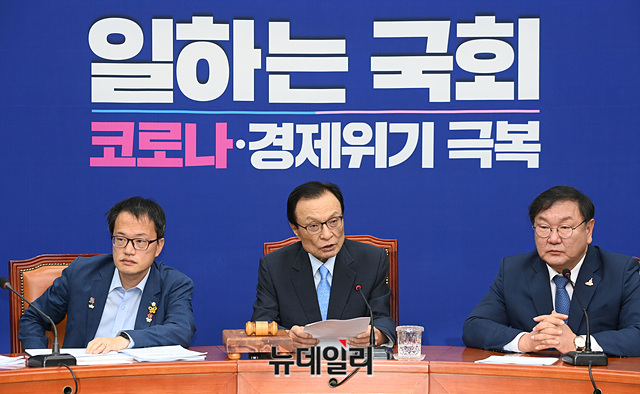 이해찬 더불어민주당 대표가 17일 오전 국회에서 열린 최고위원회의에서 모두발언을 하고 있다.