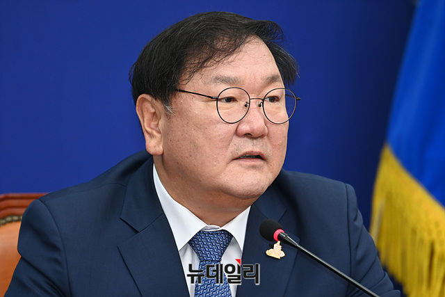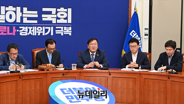 김태년 더불어민주당 원내대표가 17일 오전 국회에서 열린 최고위원회의에서 모두발언을 하고 있다.