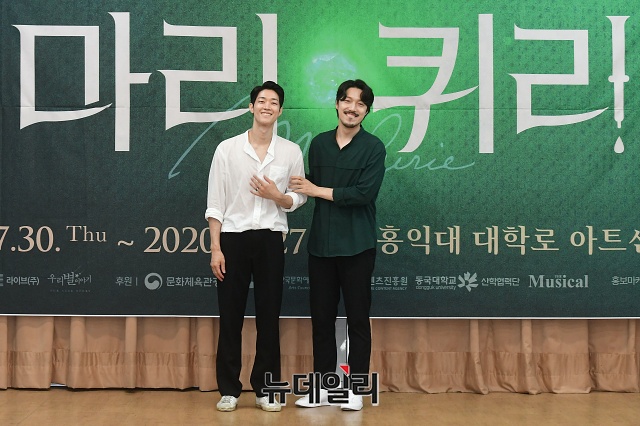 뮤지컬배우 박영수, 임별이 17일 오후 서울 중구 뮤지컬하우스 호연재에서 열린 '마리 퀴리' 시츠프로브(배우와 오케스트라가 호흡 맞추며 연습) 공개에서 포토타임을 갖고 있다.