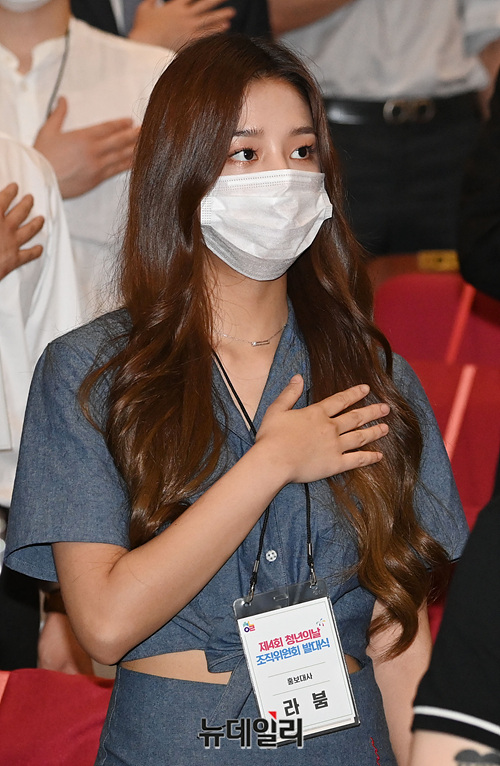 걸그룹 '라붐' 솔빈이 17일 오후 국회 의원회관에서 열린 제4회 청년의날 조직위원회 발대식에서 국민의례를 하고 있다.