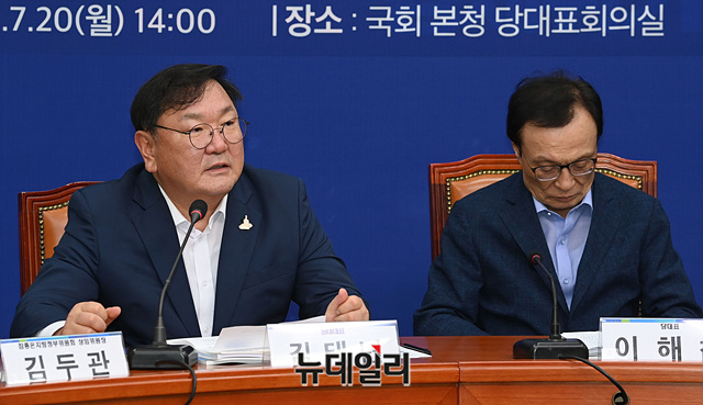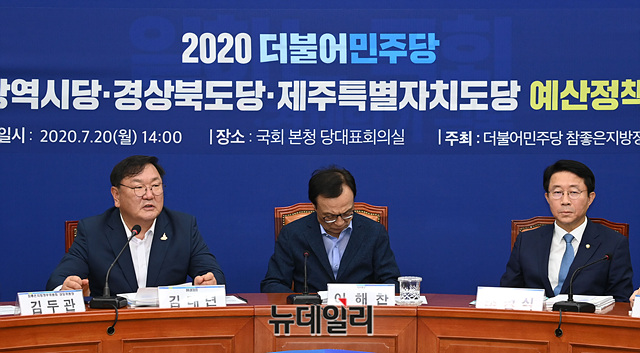 김태년 더불어민주당 원내대표가 20일 오후 국회에서 열린 '민주당-대구·경북·제주' 예산정책협의회에서 인사말을 하고 있다.