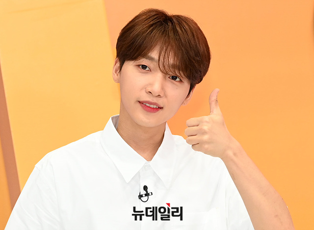 방송인 유재환(왼쪽부터), 가수 정세운, 걸그룹 이달의소녀 이브가 20일 오후 서울 마포구 에스플렉스 센터에서 '팩트인스타' 공개녹화 전 포토타임을 갖고 있다.