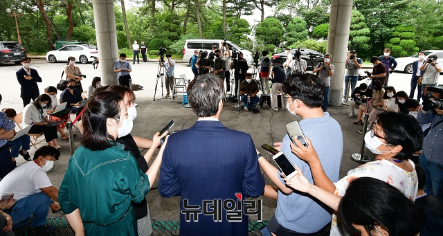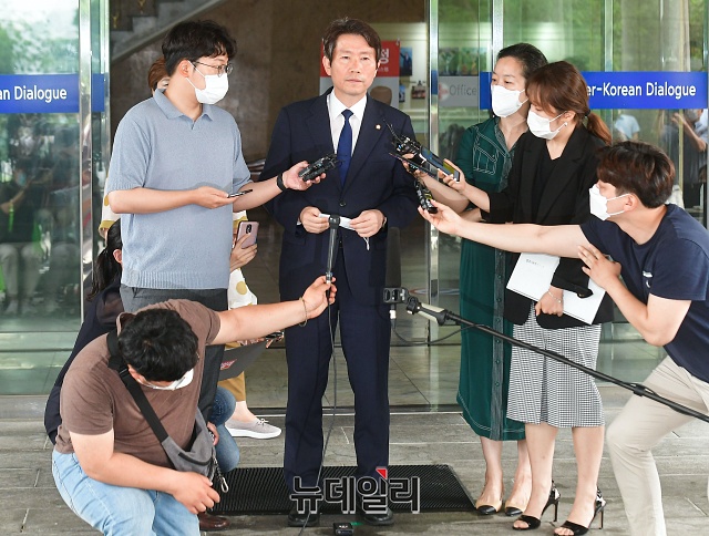 [포토] 취재진 질문에 답하는 이인영 통일부 장관 후보자
