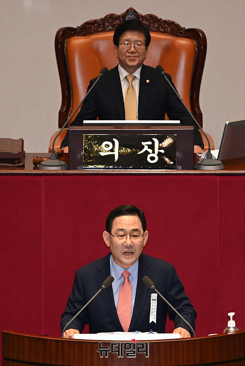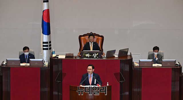 [포토] 교섭단체 대표연설하는 주호영 "文정권, 도덕적으로 파탄난 전제주의 정권"
