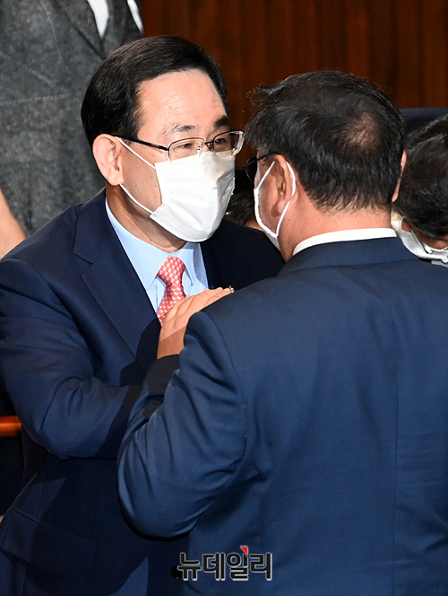 [포토] 국회 본회의, 악수하는 '주호영-김태년'