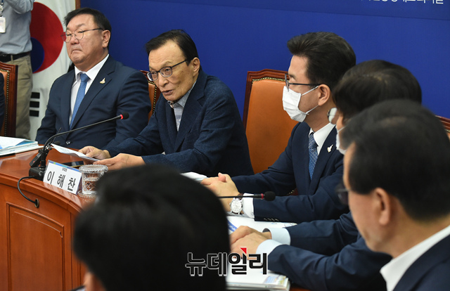 이해찬 더불어민주당 대표가 21일 오전 국회에서 열린 충청권 예산정책협의회 참석해 모두발언을 하고 있다.