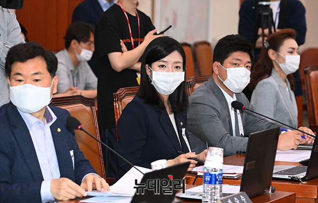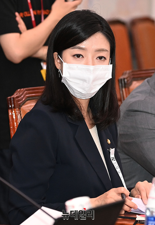 국회 문화체육관광위원인 배현진 미래통합당 의원이 21일 오전 국회에서 열린 문체위 전체회의에 참석해 자리하고 있다.