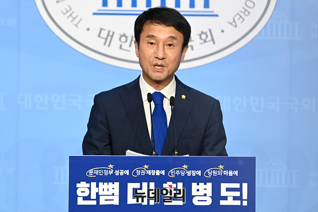 한병도 더불어민주당 의원이 21일 오후 국회 소통관 기자회견장에서 민주당 최고위원 출마 선언을 하고 있다.