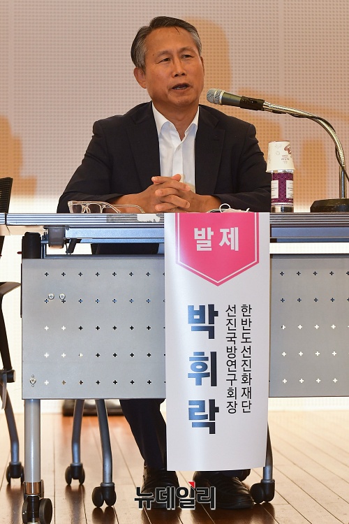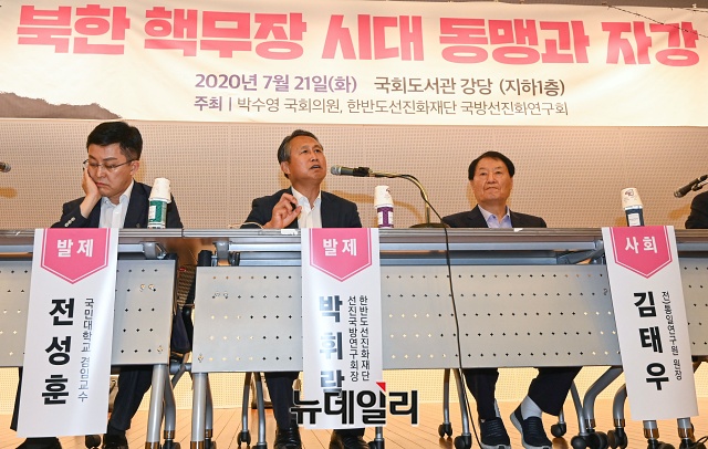 박휘락 국민대 교수가 21일 오후 국회 도서관에서 열린 '북한 핵무장 시대 동맹과 자강' 토론회에서 '북한 핵무장 상황에서 한국군 한미연합사령관 임명의 문제점과 과제'를 주제로 발표하고 있다.토론회는 김태우 전 통일연구원장이 좌장으로 박휘락 국민대 교수, 전성훈 국민대 교수, 김의식 용인대 교수가 발제를 맡았다.이어진 토론에는 신범철 한국국가전략연구원 외교안보센터장, 조영기 한반도선진화재단 선진통일연구회장, 구원근 육군정책연구위원이 참석했다.