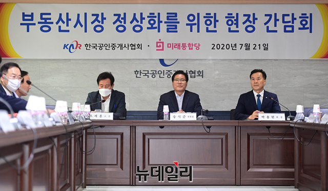 박용현 한국공인중개사협회 회장이 21일 오후 서울 관악구 한국공인중개사협회 회관에서 열린 미래통합당 부동산시장 정상화 특위 현장간담회에 참석해 자리하고 있다.현장간담회에는 송석준 위원장, 오세훈 고문, 정경희, 윤창현, 김형동, 하영재 통합당 의원, 정재호 교수, 이종인 여의도연구원 실장과 박용현 공인중개사협회장, 송웅섭, 김성제, 이영태 지부장, 허준, 박종성 대의원, 차준근 회원 등이 참석했다.현장간담회 직후 현장 공인중개사 사무소와 주거현장을 방문해 주민들의 의견을 청취했다.