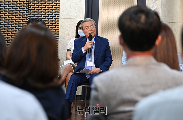 김종인 미래통합당 비상대책위원장이 21일 오후 서울 서초구 쿤스트하우스에서 열린 청년예술인 타운홀 미팅에서 인사말을 하고 있다.