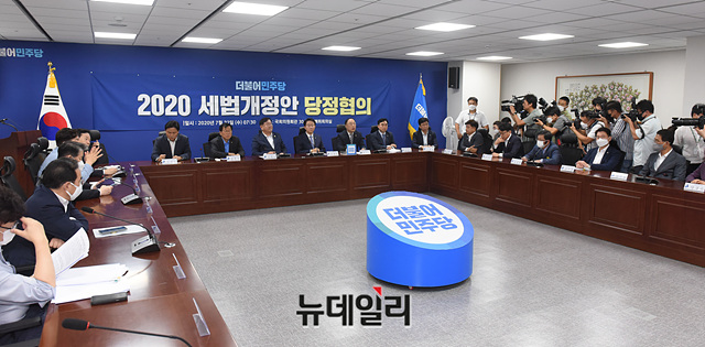 홍남기 경제부총리 겸 기획재정부 장관이 22일 오전 국회에서 열린 2020년 세법개정안 당정협의에서 발언을 하고 있다.