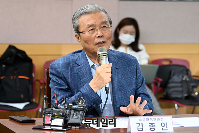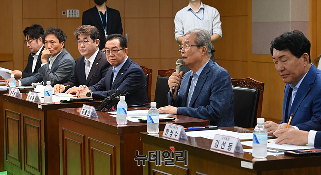 김종인 미래통합당 비상대책위원장이 22일 오전 인천 서구 공촌정수장에서 열린 수돗물 유충 사태 현장점검 간담회에서 발언을 하고 있다. 이날 김 위원장은 "수돗물에서 유충이 나왔다는 사실은 솔직히 말씀드려 창피스러운 일 아닌가"라며 비판했다.(인천=박성원 기자)
