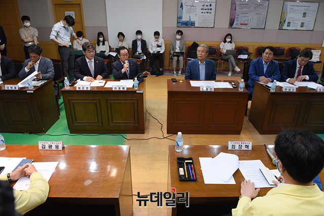 이종배 미래통합당 정책위의장이 22일 오전 인천 서구 공촌정수장에서 열린 수돗물 유충 사태 현장점검 간담회에서 발언을 하고 있다. (인천=박성원 기자)