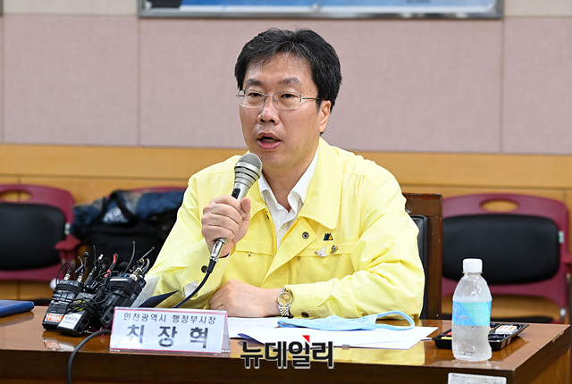 최장혁 인천광역시 행정부시장이 22일 오전 인천 서구 공촌정수장에서 열린 미래통합당 수돗물 유충 사태 현장점검 간담회에서 발언을 하고 있다. (인천=박성원 기자)