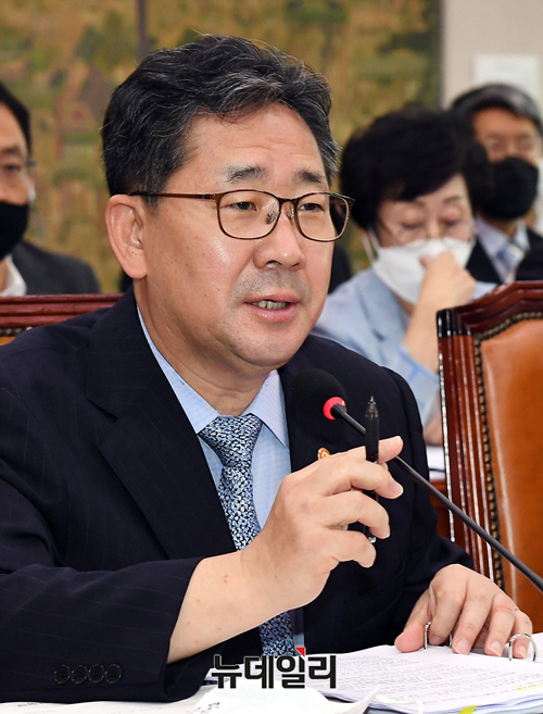 박양우 문화체육관광부 장관이 22일 국회에서 열린 '철인 3종경기 선수 가혹행위 및 체육분야 인권침해에 대한 청문회'에 출석해 발언을 하고 있다.