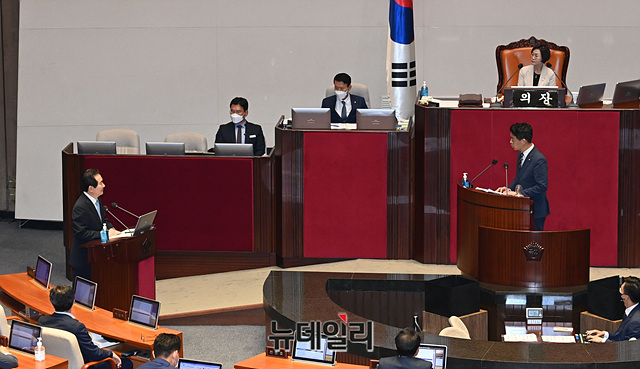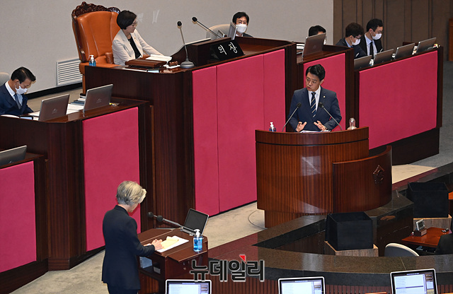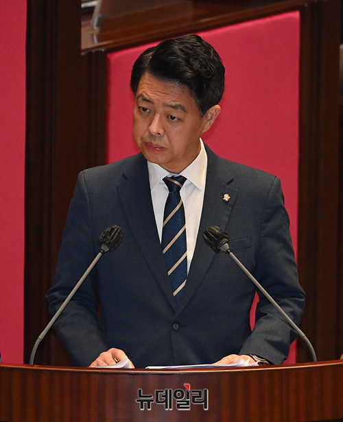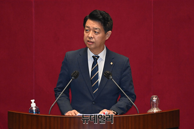 김영호 더불어민주당 의원이 22일 오후 국회 본회의장에서 열린 제380회국회(임시회) 제4차 본회의 정치·외교·통일·안보 분야 대정부질문을 하고 있다.