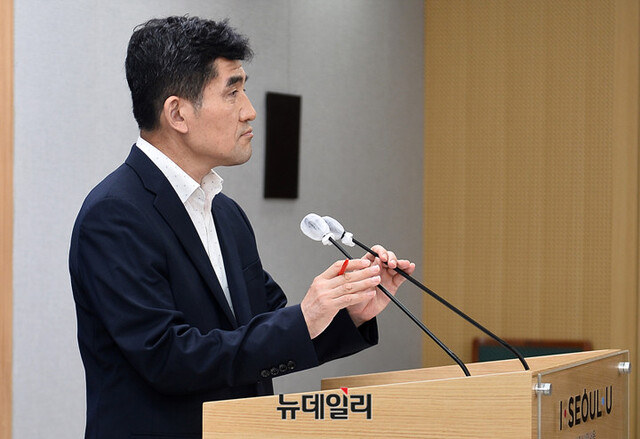 황인식 서울시 대변인이 22일 오후 서울 중구 서울특별시청에서 고 박원순 성추행 관련 '피해자 지원단체 2차 기자회견'에 대한 서울시의 입장발표에 앞서 인사하고 있다.