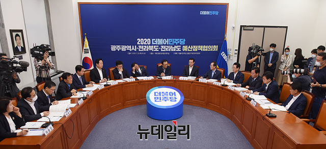 이해찬 더불어민주당 대표가 23일 오전 국회에서 열린 '민주당-광주·전남·전북' 예산정책협의회에서 인사말을 하고 있다.