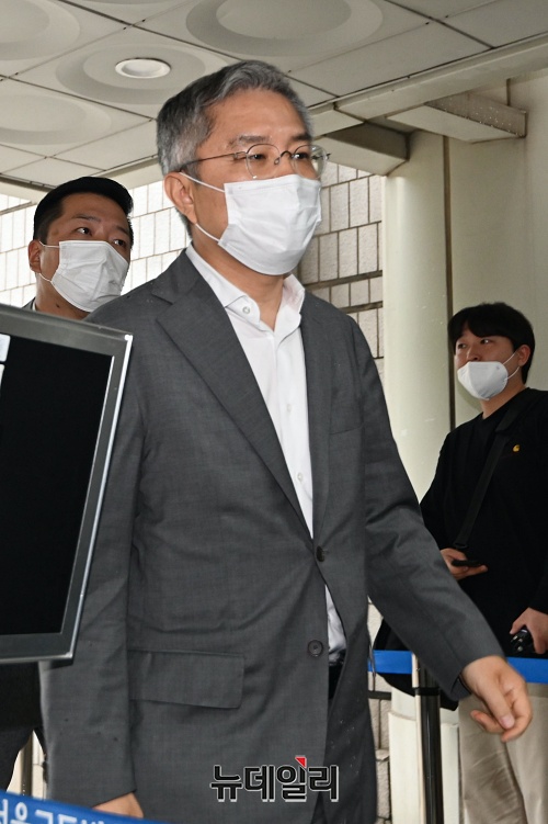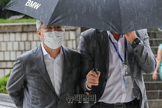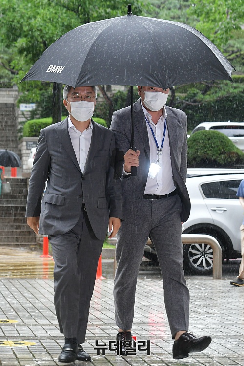 [포토] 조국 아들 '허위 인턴 증명서' 발급 혐의, 법정 들어서는 최강욱