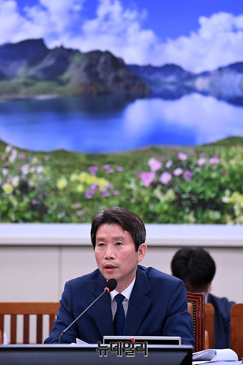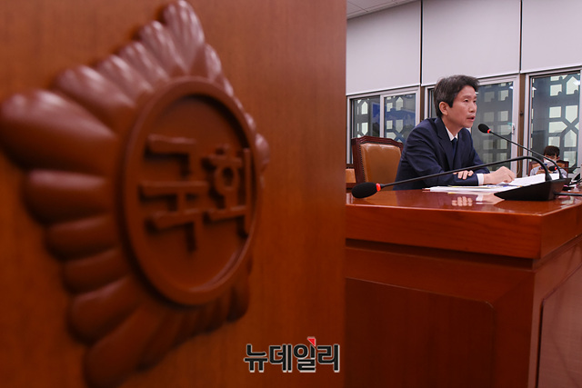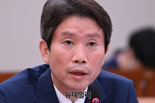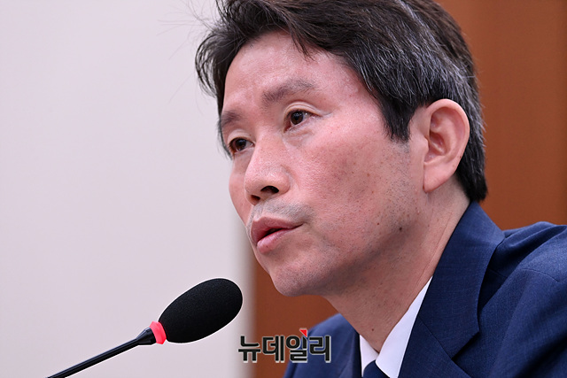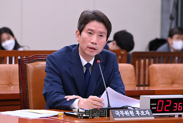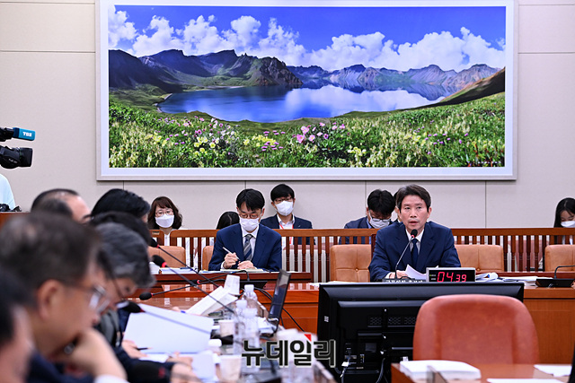 이인영 통일부 장관 후보자가 23일 오후 국회 외교통일위원회 인사청문회에서 의원들의 질문에 답변하고 있다.