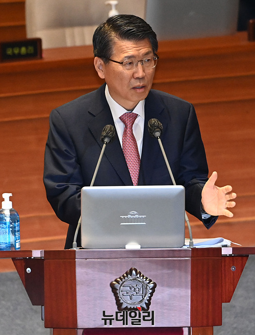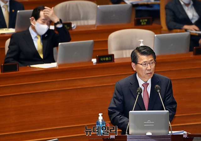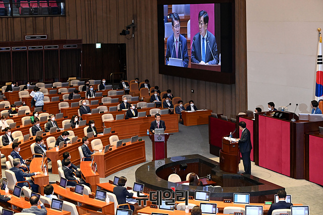 은성수 금융위원장이 23일 오후 국회 본회의장에서 열린 제380회국회(임시회) 제5차 본회의 경제 분야 대정부질문에서 의원들의 질의에 답하고 있다.