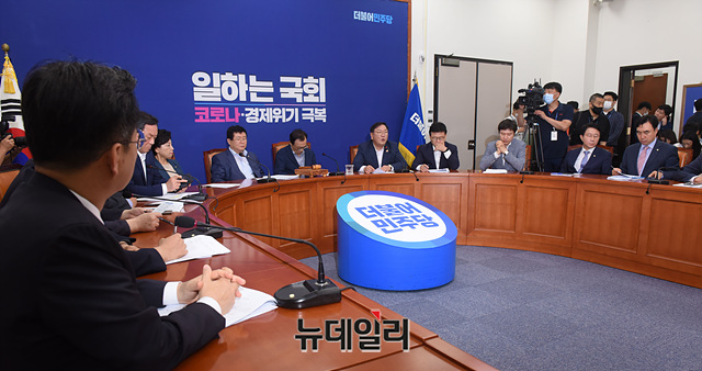 김태년 더불어민주당 원내대표가 24일 오전 국회에서 열린 최고위원회의에서 모두발언을 하고 있다.