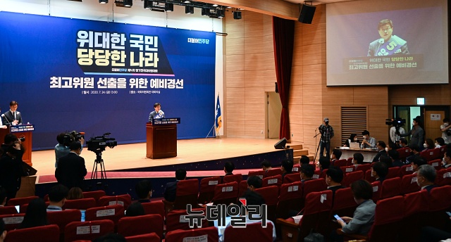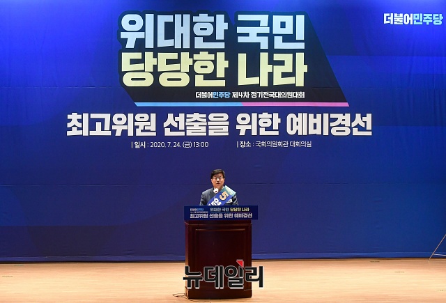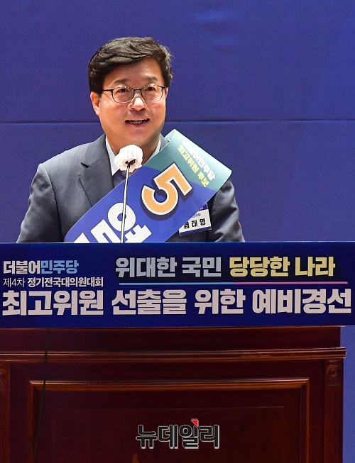 염태영 더불어민주당 최고위원 후보가 24일 오후 국회 의원회관에서 열린예비경선에서 정견발표를 하고 있다.