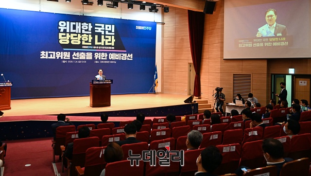 김종민 최고위원 후보가 24일 오후 국회 의원회관에서 열린 '더불어민주당 최고위원 선출을 위한 예비경선'에서 정견발표를 하고 있다.