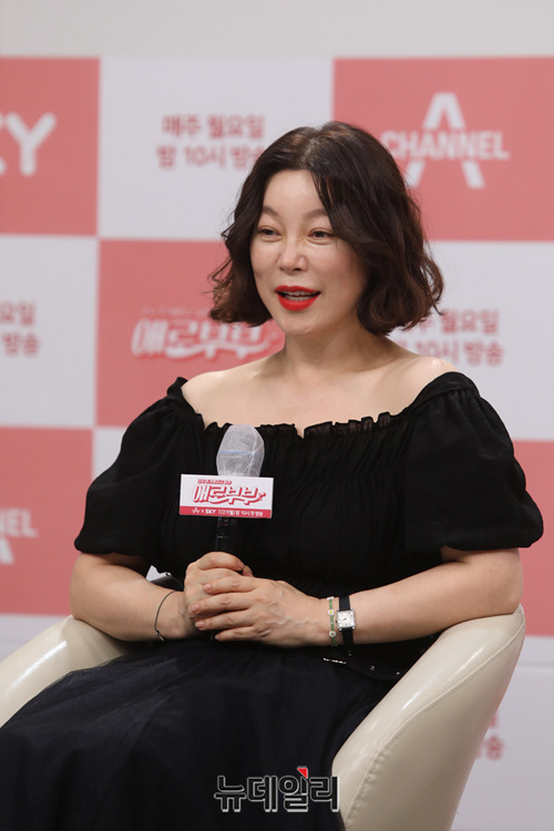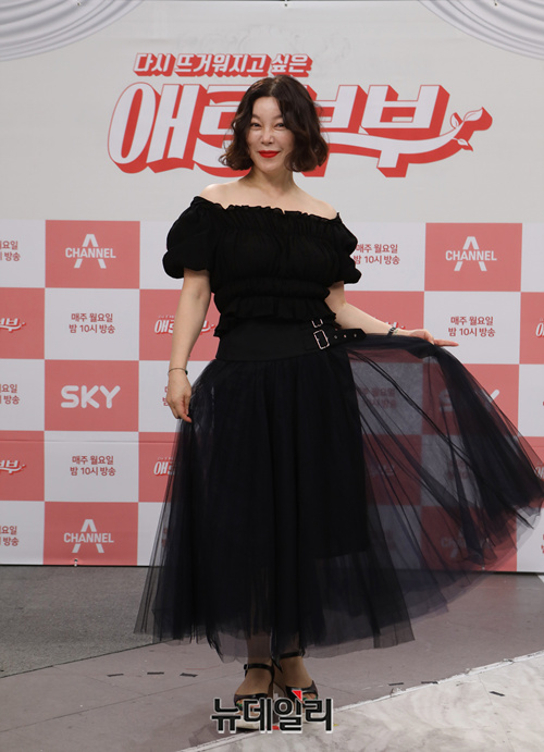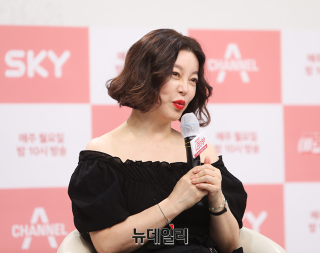 배우 최화정이 27일 오후 온라인으로 진행된 스카이TV 토크쇼 프로그램 '애로부부' 제작보고회에서 포토타임을 갖고 있다.
