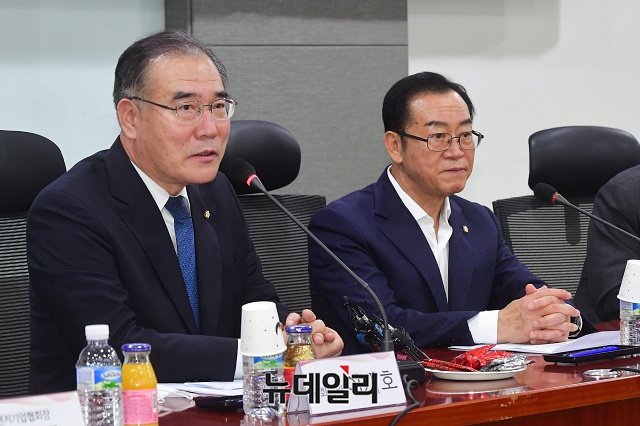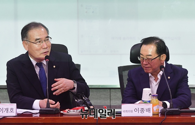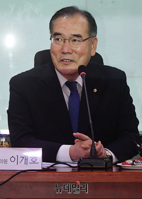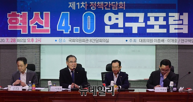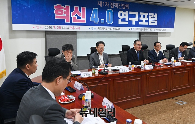 이개호 더불어민주당 의원이 28일 오후 국회 의원회관에서 열린 '혁신 4.0 연구포럼' 정책간담회에서 개회사를 하고 있다. 포럼에는 고경모 유진투자증권 대표, 안건준 벤처기업협회장이 발제를 맡았다.