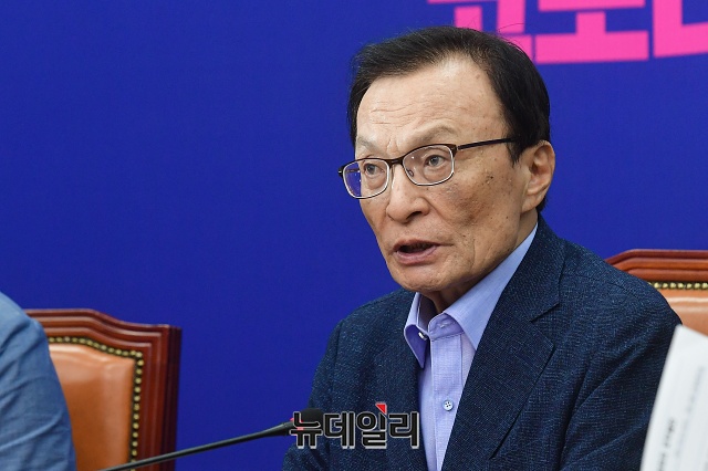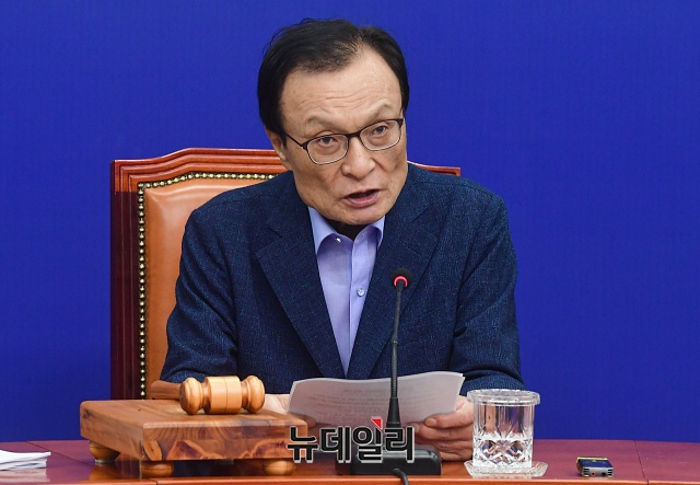 이해찬 더불어민주당 대표가 29일 오전 국회에서 열린 최고위원회의에서 모두발언을 하고 있다.