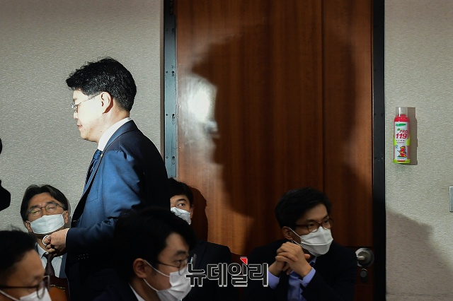 장제원 미래통합당 의원이 29일 오전 국회에서 열린 법제사법위원회 전체회의에서 퇴장하고 있다.