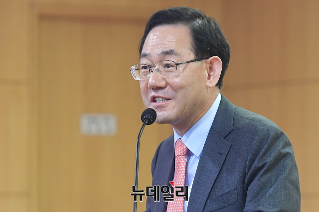 [포토] 코로나 이후 정책진단 포럼, 축사하는 주호영 원내대표