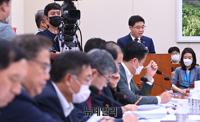 지성호 미래통합당 의원이 3일 오후 국회에서 열린 외교통일위원회 전체회의에서 제안설명을 하고 있다.