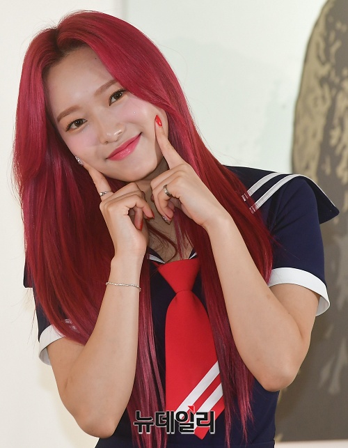 [포토] 강렬한 레드로 포인트 준 에이프릴 예나