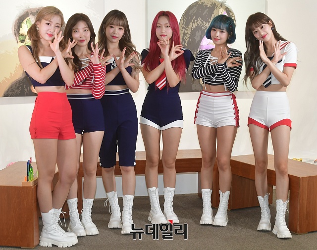 걸그룹 에이프릴이 3일 오후 서울 서초구 맨션나인에서 열린 'K-POP 스타 게릴라 인터뷰(연출 김영익)'에서 포토타임을 갖고 있다.